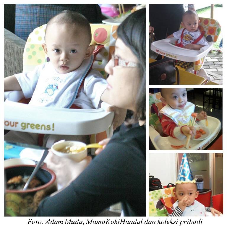 Karena saya tinggal di rumah, urusan anak saya lakukan sendiri sehingga saya merasa tidak perlu memperkerjakan seorang nanny. Dan sudah tentu saya ingin menerapkan kedisiplinan kepada Basti untuk makan sambil duduk di kursi. Ini juga sebagai strategi untuk menyiasati apabila nanti saat dia sudah bisa berjalan tidak perlu ada acara kejar-kejaran dalam menyuap makanan, atau makan sambil jalan-jalan di taman yang bisa berisiko makanan akan terkena debu atau kuman. Untuk itu saya selalu mengusahakan agar di manapun Basti berada pada saat jam makan atau cemilan selalu tersedia highchair. Beberapa tempat makan di Jakarta sudah baby friendly alias mereka menyediakan highchair, tapi di kota lain sepertinya masih belum akrab dengan konsep ini.