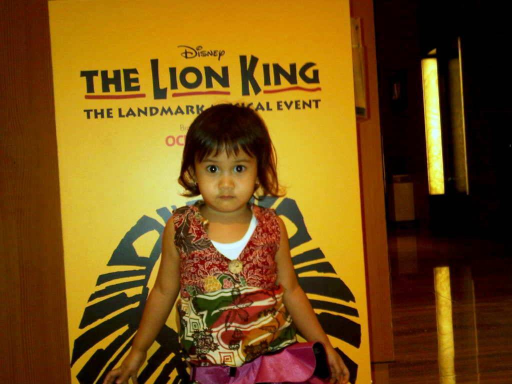 Di luar negeri, pertunjukan musikal adalah salah satu bentuk performing art yang sudah sangat maju dan digemari. Salah satu judul pertunjukan yang sangat populer adalah Lion King. Musikal yang debut pertamanya adalah di Broadway Theater di NY, Amerika Serikat ini tiketnya selalu habis terjual dan kalau mau menonton harus memesan beberapa bulan sebelumnya. Kebetulan 6 tahun yang lalu saya berkesempatan untuk menontonnya langsung di Broadway dan memang sangat bagus. Karena kepopulerannya mereka mulai main di Asia, sayangnya baru ada di Singapura. Kebetulan saya dan anak-anak memang sedang berada di Singapura untuk menonton musikal lain jadi sekalianlah kami menonton Lion King juga.