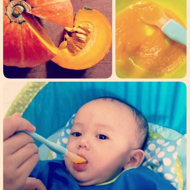 Kukus labu kuning dengan kulitnya. Kupas kulitnya setelah dikukus. Haluskan labu, sisihkan. Haluskan avokad secara terpisah. Campurkan kedua bahan dan tambahkan ASI perah untuk mendapatkan tekstur yang tepat.