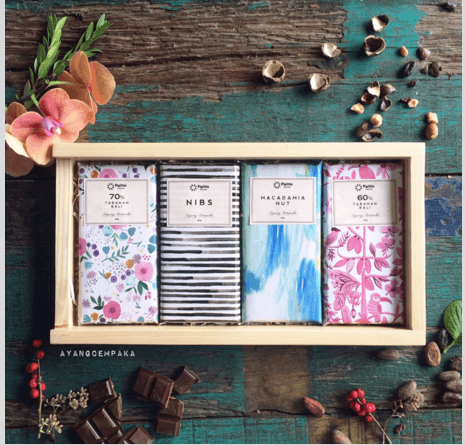 Chocholate Gift Set ini merupakan hasil kolaborasi antara Pipiltin Cocoa dengan ilustrator Ayang Cempaka. Berisi empat batang cokelat yang dibungkus dengan kertas bergambar ilustrasi dari Ayang. Harga: Rp 350.000,-