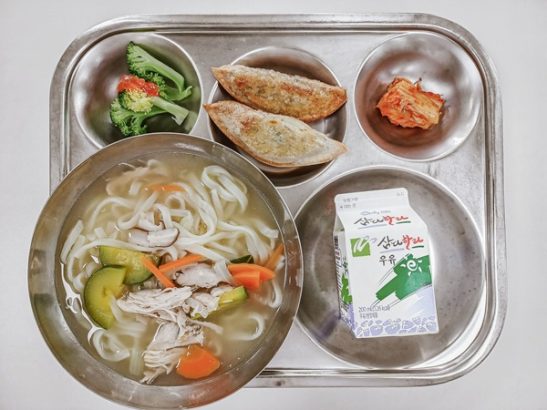 Makanan yang disediakan sehat dan seimbang, biasanya terdiri dari nasi, sup, kimchi, protein, dan sayuran atau buah-buahan. Hampir semua siswa di negara ini mengikuti program ini, menjadikannya salah satu program makan siang sekolah paling sukses di dunia.