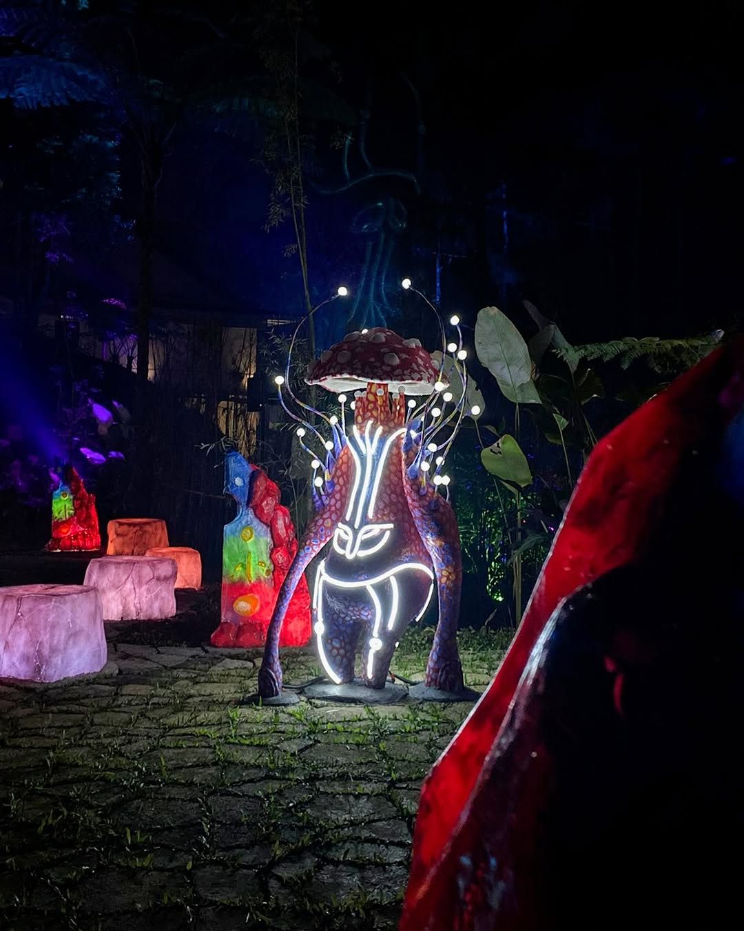 Hutan Mycelia bisa disebut sebagai tempat wisata yang beda dari yang lain. Pengunjung bisa merasakan suasana seperti di dunia dongeng. Pasalnya di sini hutan pinus dan bebatuannya dihiasi cahaya warna-warni plus efek audio-visual yang keren banget. Anak-anak pasti suka lihat rumah-rumah kecil para “bangsa Mycelia” yang lucu dan penuh warna. Banyak juga spot foto estetik buat Mommies dan keluarga.