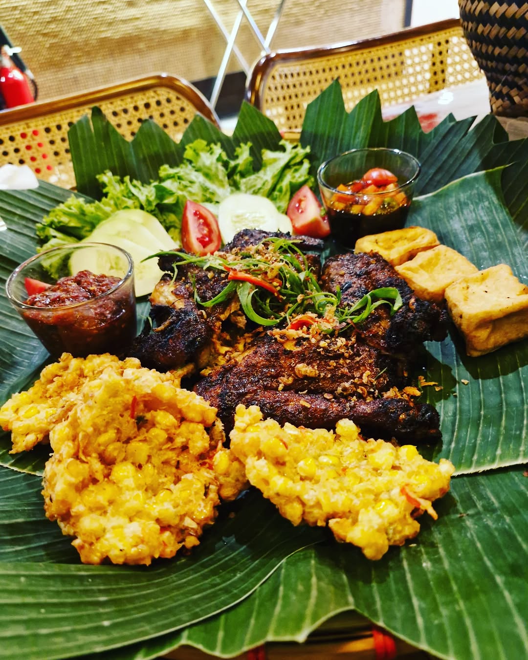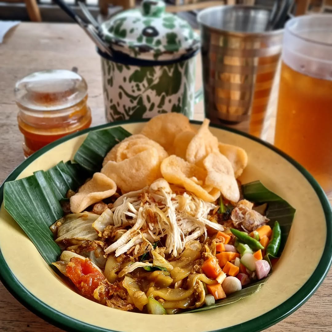 Restoran estetik ini menghadirkan menu khas Bali yang nikmat dan autentik. Kamu bisa memilih kombinasi nasi campur sendiri. Jangan lewatkan Es Kopi Cendol dan Wedang Secang sebagai pendamping.