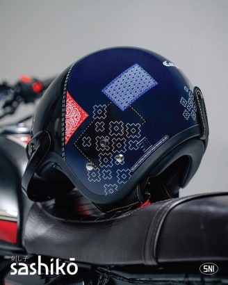 Helm Cargloss CFM Sashiko Series hadir dengan motif yang terinspirasi dari teknik jahitan tradisional Jepang sashiko. Gayanya stylish karena menggabungkan heritage dan modern style. Namun, karena helm ini model half-face jadi bagian bawah tidak sekuat helm full-face. Tetap aman dipakai dengan sistem pengait Microlock yang melindungi dengan nyaman.