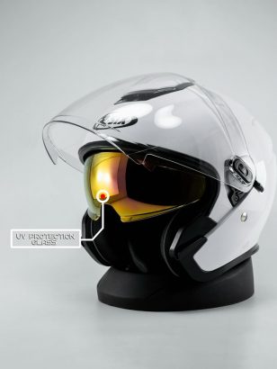 R-SIX hadir dengan desain modern yang futuristik untuk penggunaan sehari-hari. Visornya berbahan polycarbonate injeksi dan sudah antigores. Pilihan warnanya juga banyak, jadi ayah bisa pilih sesuai gaya. Ada ventilasi Udara di bagian atas dan belakang sehingga pengguna tetap merasa nyaman dan tak sumpek. Visor luar bening sehingga cocok untuk dipakai saat siang maupun malam hari.