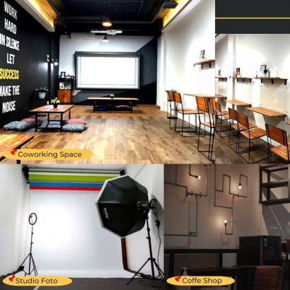 Bangunan 4 lantai ini bernuansa putih bersih dan menyediakan coworking space, lesehan, indoor, rooftop, hingga musala yang nyaman. Asyiknya lagi, setiap lantai punya area outdoor balcony. Dengan harga Rp50.000 seharian, Mommies juga mendapatkan gratis print, scan, free flow air putih dispenser, dan teh. Lagi WFH tiba-tiba lapar? Mommies tinggal pesan makanan di lantai bawah lalu lanjut kerja lagi, deh.