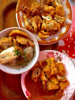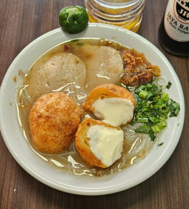 Kalau Mommies dan Daddies lagi ke Bandung, makanan yang satu ini nggak boleh dilewatkan, yaitu bakso cuankie atau batagor serayu yang juga jadi ikon kuliner khas Bandung. Tempatnya selalu penuh antrean dan ramai, bahkan sejak pagi. Harus pintar-pintar milih waktu.
