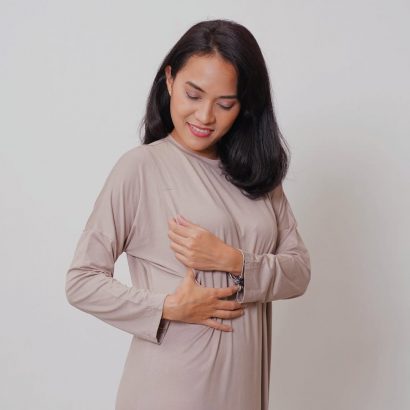 Ini adalah pakaian paling cepat dan mudah karena Mommies tidak perlu memadupadankan atasan dan bawahan. Pilih dress atau gamis dengan aksen khusus seperti akses bukaan tersembunyi (zipper samping, bukaan layer vertikal, atau bukaan silang). Dari gamis floral yang manis untuk acara semi-formal hingga dress katun polos untuk aktivitas di rumah, dress menyusui kini hadir dengan desain yang elegan dan feminin.