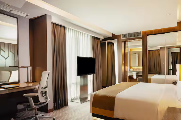 Siapa bilang staycation romantis harus keluar kota? Di DoubleTree by Hilton Jakarta, romance feels langsung hadir lewat suasana taman hijau yang luas, bikin seolah-olah sedang liburan di kota lain. Cocok banget buat pasangan yang ingin short romantic escape tanpa capek perjalanan jauh.