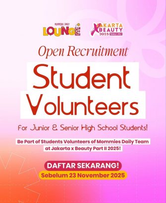 Student Volunteer adalah program sukarelawan yang dibuka untuk murid kelas 3 SMP–3 SMA untuk bergabung dengan tim Mommies Daily di Mommies Daily Lounge selama event Jakarta X Beauty. Dengan penjelasan itu, program ini memang rutin dibuka setiap ada event JXB. Buat Mommies dan anaknya yang tertarik ikut program ini, jangan lupa selalu pantau kapan event JXB akan digelar kembali. Jangan khawatir soal upah karena program ini berbayar, ya.