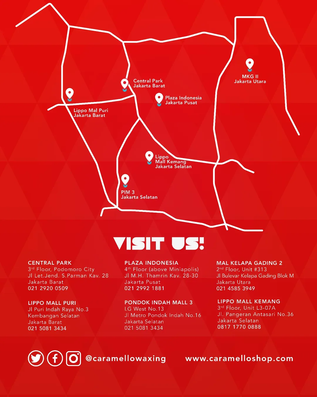 Dekorasi interiornya menarik dengan warna-warna merah. Cocok untuk mommies yang mencari tempat waxing instagrammable dengan harga bersahabat. Lokasinya pun strategis di setiap wilayah Jakarta.