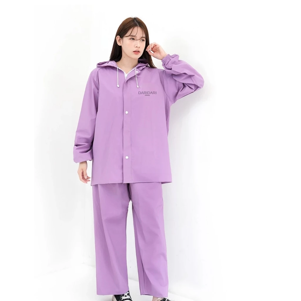Terbuat dari PVC yang tebal, halus, dan lentur, jas hujan DariDari sudah dilengkapi dengan seam-press agar jahitan tidak rembes saat terkena air hujan. Bagian penutup kepalanya punya pinggiran yang bisa diserut dan disesuaikan, serta sudah memiliki pinggiran karet pada bagian lengan tangan. Warnanya juga lucu-lucu, mulai dari dusty pink, ungu, sage, cream, army, hingga hitam dengan ukuran M sampai XXL.
