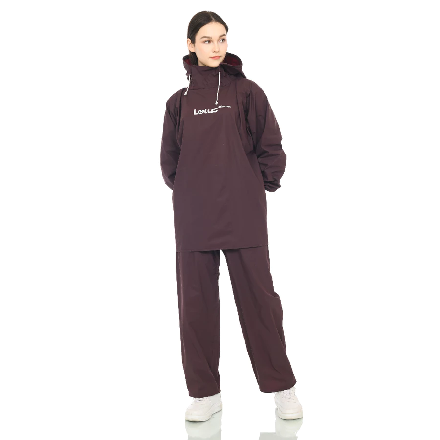 Waterproof dan windproof, jas hujan Lotus sudah berbahan PVC yang tebal tapi tetap ringan, elastis, dan anti rembes. Meski tidak punya resleting, jas hujan ini cukup lebar sehingga aman saat Mommies membawa tas dan barang lainnya. Penutup kepalanya lebar, sehingga pas dipakai Mommies yang berhijab dan bagian depannya bisa diserut. Nggak hanya itu, terdapat juga karet di pergelangan tangan dan varian warna yang beragam, mulai dari maroon, navy, hitam, cream, hijau sage, hijau army, pink, dan blue sky dengan ukuran XL dan XXL.