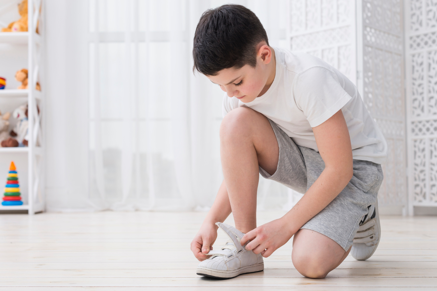 Kaki anak-anak masih dalam tahap pembentukan dengan tulang yang lunak dan bentuk yang terus berubah. Khusunya, nih, anak balita dan yang baru masuk sekolah dasar. Sepatu yang sesuai membantu mendukung pola berjalan alami dan mencegah masalah kaki. Misalnya kaki datar atau berjalan dengan ujung jari kaki.