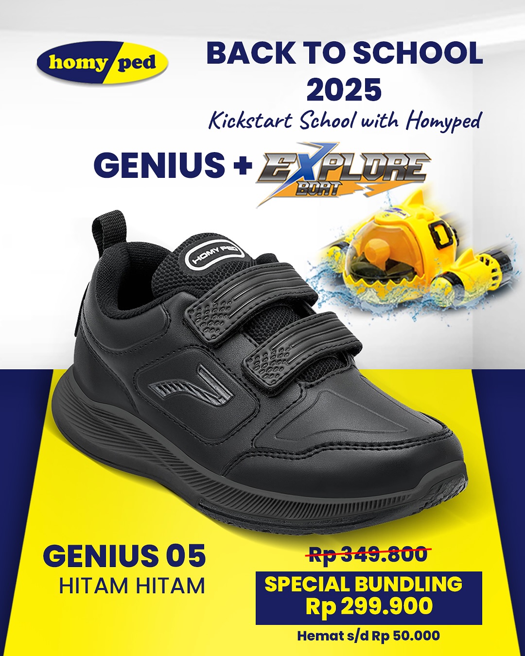 Pasti tahu dengan brand satu ini, dong? Homyped, brand lokal legendaris Indonesia yang sudah ada sejak tahun 80-an, punya banyak lini mulai dari dewasa, sandal, dan juga anak. Untuk sepatu sekolah ada Homyped Genius yang berwarna hitam sehingga cocok untuk standar sekolah. Model ini ringan dan nyaman dengan desain cocok baik untuk anak laki-laki maupun perempuan.