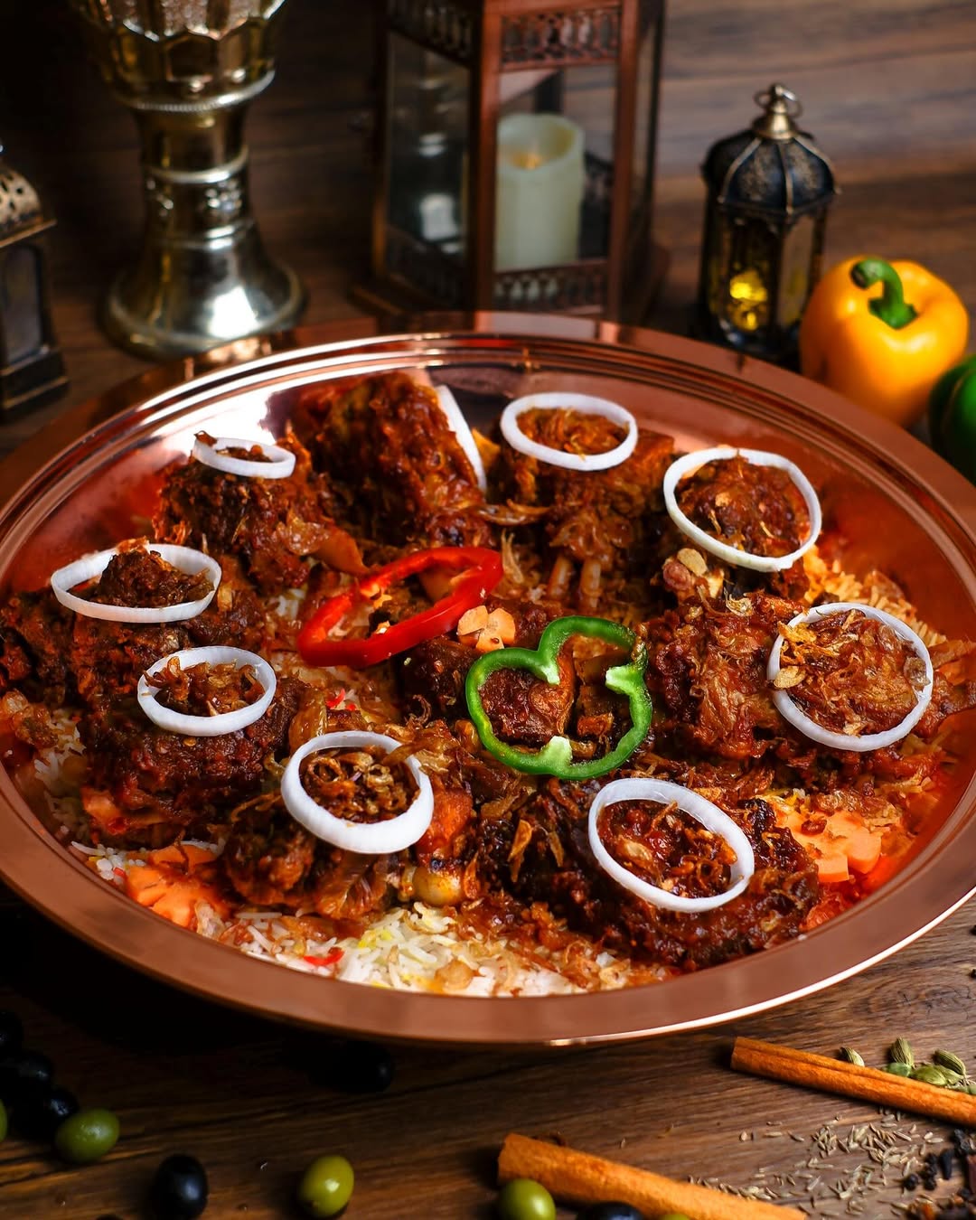 Restoran ini merupakan pilihan yang tepat untuk iftar keluarga karena ruangannya luas dan nyaman, bahkan sering juga menjadi pilihan buka puasa perusahaan dengan jumlah orang yang banyak. Menu restoran ini berfokus pada hidangan nasi klasik Timur Tengah seperti nasi mandi dengan daging domba atau ayam, maglubah, dan hidangan daging yang dimasak perlahan dengan bumbu yang kaya rempah.