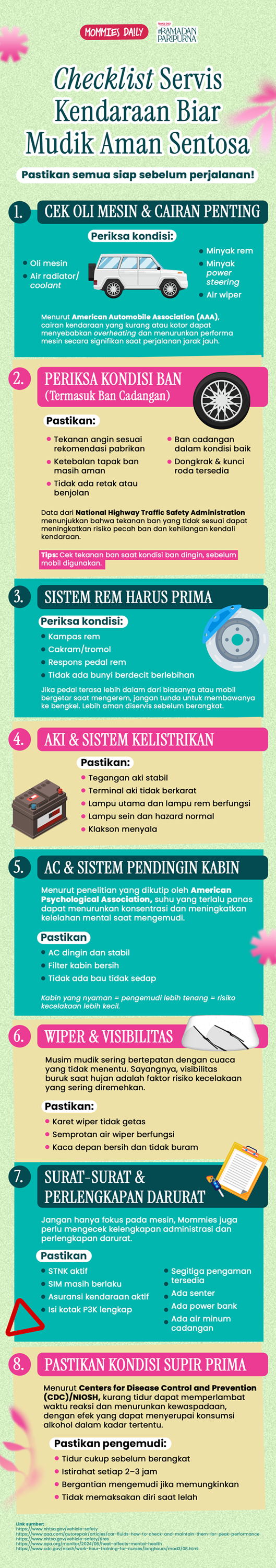 Dengan Mommies memastikan mobil dalam kondisi prima dan pengemudi cukup istirahat, perjalanan mudik bisa terasa lebih tenang dan aman. Karena pada akhirnya, tujuan mudik bukan hanya sampai di kampung halaman, tetapi sampai dengan selamat bersama keluarga. Setuju?