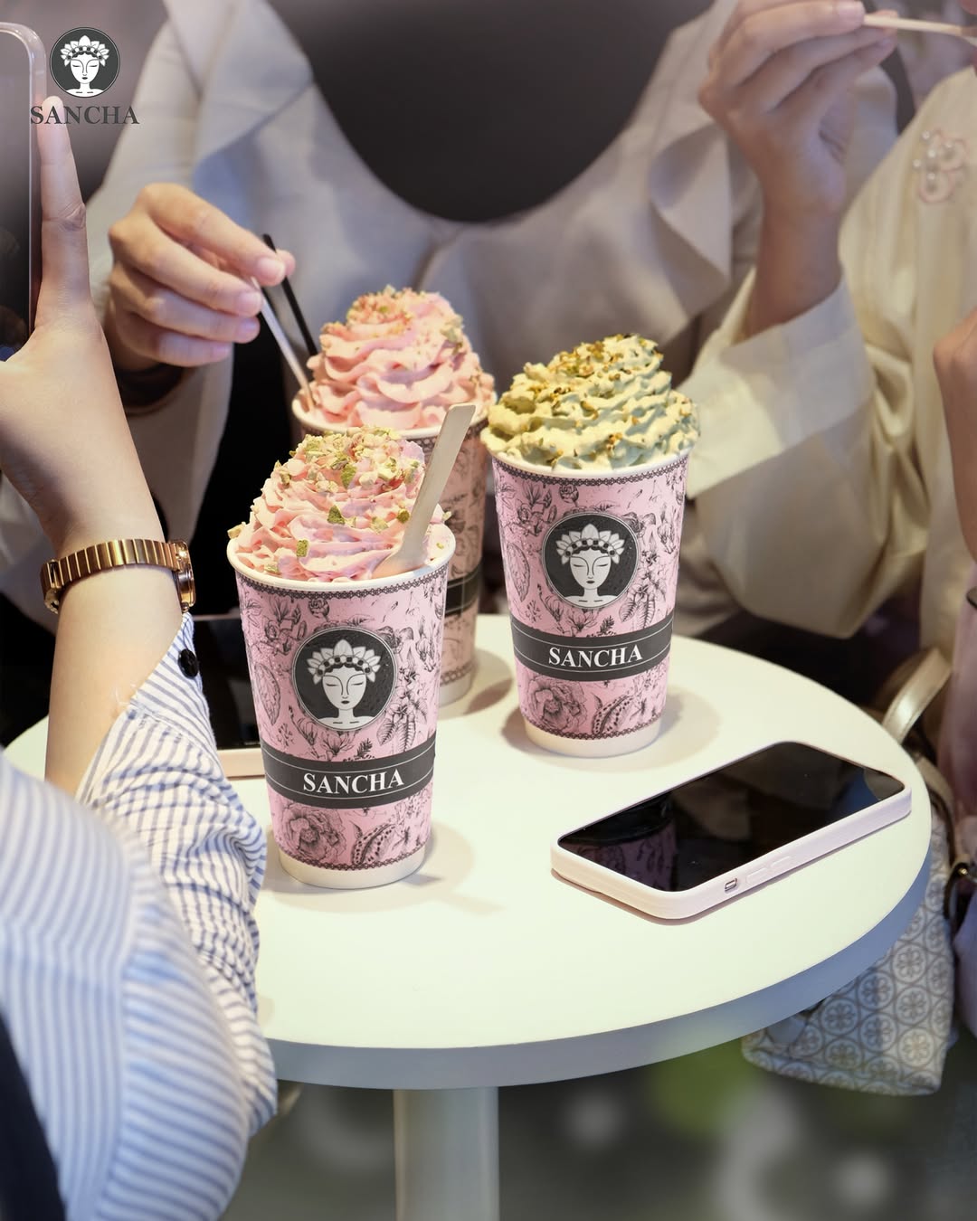Sancha merupakan gerai minuman teh asal Indonesia yang juga lagi hits di kalangan penikmat milk tea. Kekhasan milk tea dari Sancha datang dari aromanya yang kuat dan rasa tehnya yang sedikit lebih dominan daripada susu. Mommies bisa mencoba varian populernya, yaitu Da Hong Pao Milk Tea Frappe dan seri pistachio.
